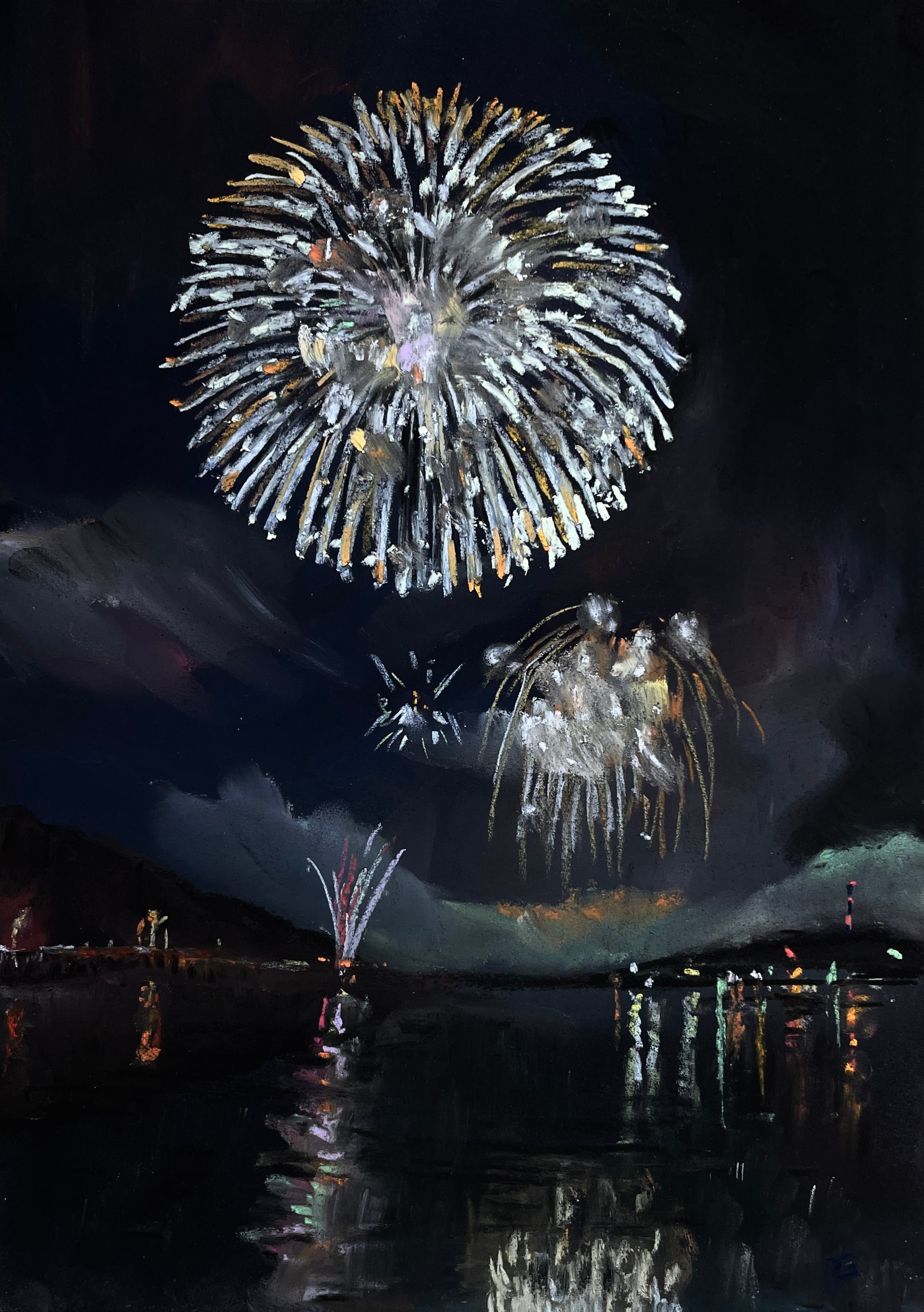 波に花火が溶けていく。