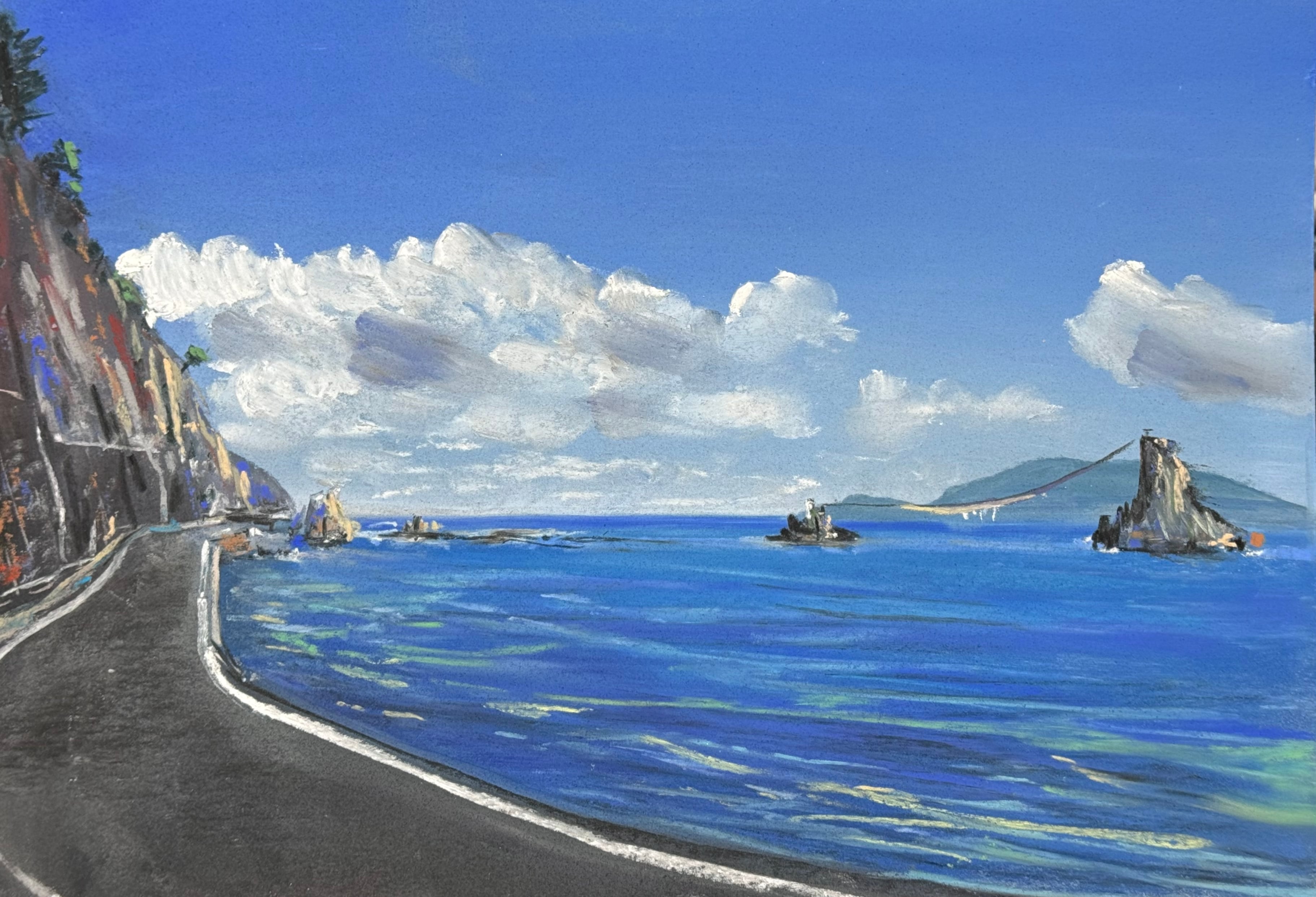 ガードレールもなく海が間近に迫る。時化の時は道が海に呑まれる。
